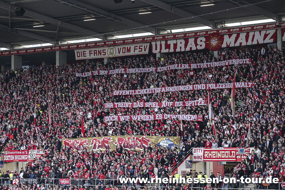Neben der Staatsanwaltschaft Mainz geht auch die Polizei Mainz mit Maßnahmen gegen die Fans vor: „Begleitend zu den Durchsuchungsmaßnahmen im Auftrag der Staatsanwaltschaft Mainz am heutigen Tage, wurden bei 12 der bislang identifizierten Beschuldigten ein Anhörungsverfahren im Hinblick auf Platzverweisverfügungen zugestellt. Ziel dieser Maßnahme ist es, identifizierten Gewalttäter den Zutritt zum Stadiongelände für die nächsten Heimspiele des 1. FSV Mainz 05 am 06.04.24 und 13.04.24 und zu anderen in der Fußballszene einschlägigen Örtlichkeiten zu untersagen. Zudem wurden 32 Beschuldigten Gefährderschreiben übersandt oder ausgehändigt. Hiermit soll den Tätern aufgezeigt werden, dass sie namentlich bekannt sind und die Störung der öffentlichen Sicherheit und Ordnung Konsequenzen nach sich zieht und nicht toleriert wird“, teilte das Polizeipräsidium Mainz mit. (Faszination Fankurve, 19.03.2024)