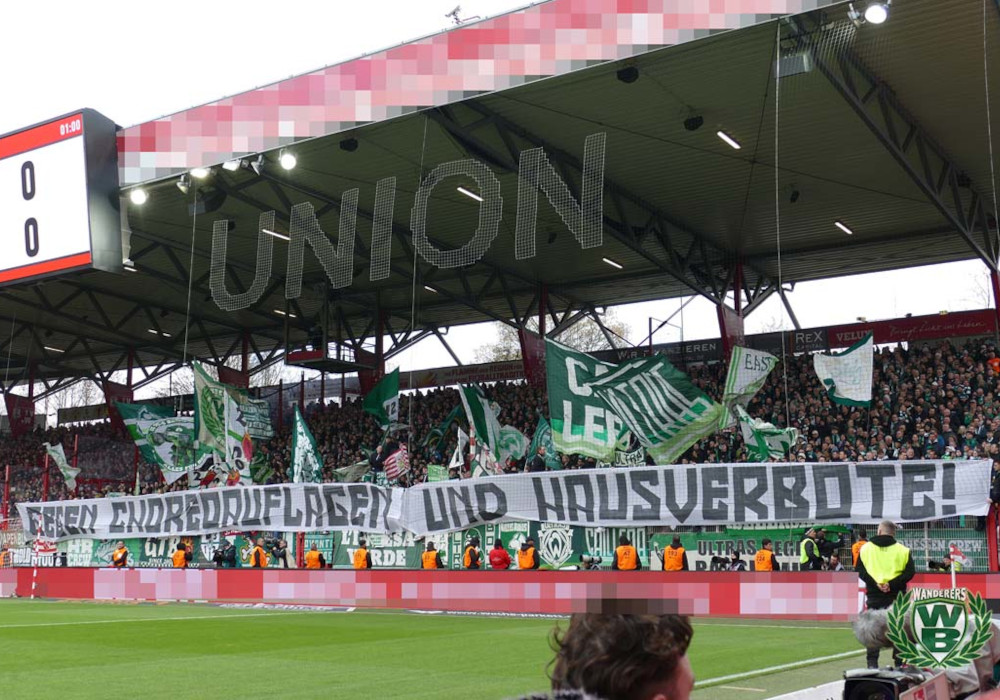 Auch die Stimmung rund um Fußballspiele wird aktuell immer angespannter. Sicherlich habt auch ihr schon mal die behelmten und bewaffneten Hundertschaften rund um das Weserstadion gesehen, die unzähligen eingesetzten Pferde, Hunde, Gitter und Wasserwerfer der Polizeibehörden. Gar das Tragen von Maschinenpistolen wurde bereits dokumentiert, als ginge es hier um Terrorabwehr. Was für ein Bild von Fußballfans vermittelt die Polizei hiermit? Soll das unser Fußball sein?