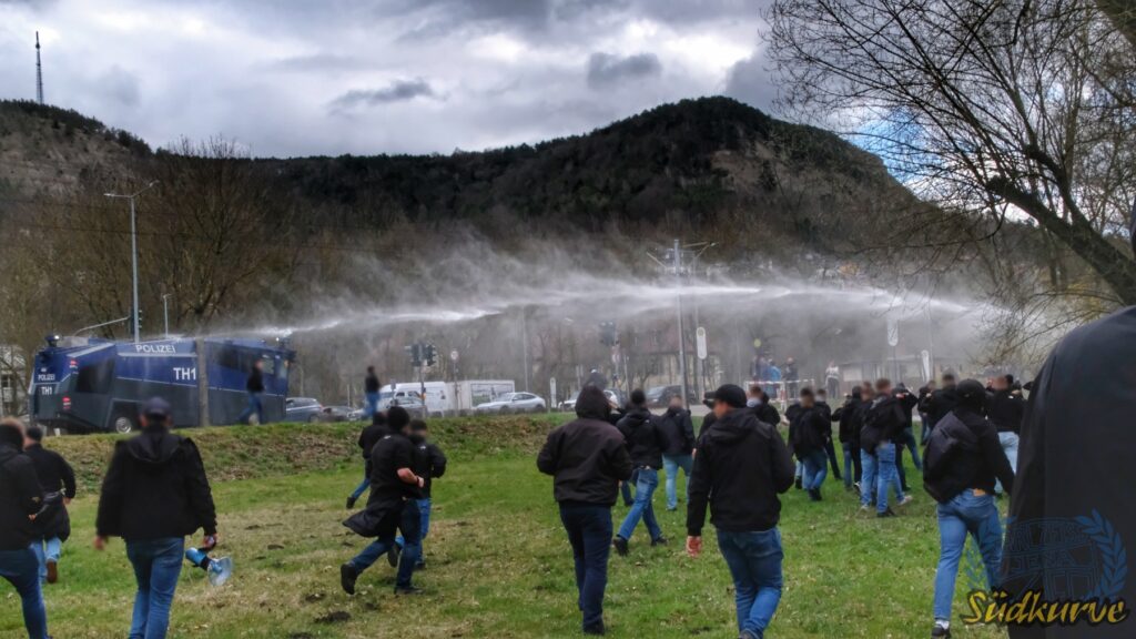 Die Südkurve Jena hat einen fünf Minuten langen Video-Rückblick auf das 107. Thüringen-Derby veröffentlicht. In dem Zusammenschnitt sind u.a. der Fanmarsch, die Rennereien mit der Polizei, der Wasserwerfer-Einsatz und die Pyroaktionen im Ernst-Abbe-Sportfeld zu sehen.
