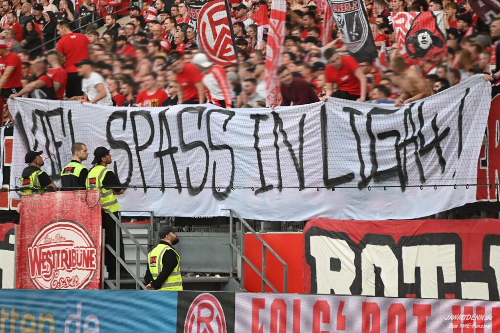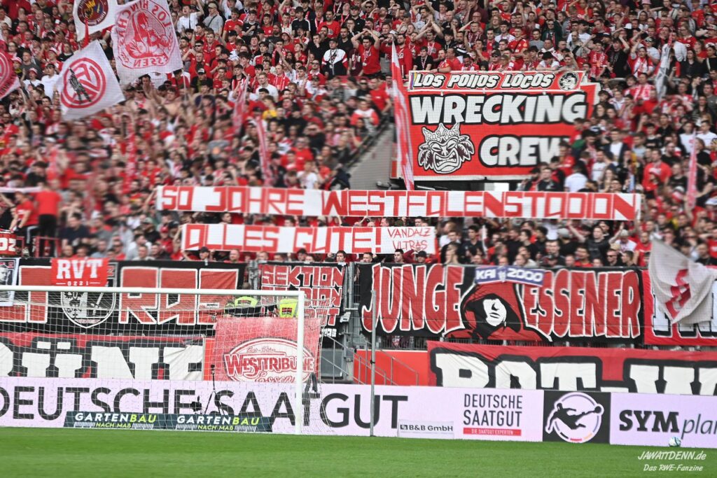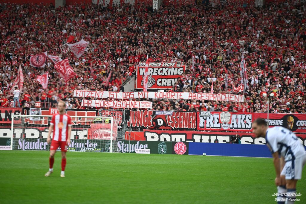 Die Vandalz Ultras gratulierten dort außerdem noch zu 50 Jahren Westfalenstadion und zeigten ein „F*tzen? Ist das mit Kohorte abgesprochen? Ihr H*rensöhne!“-Spruchband als Reaktion auf ein beleidigendes Graffiti, das von MSV-Ultras gemalt wurde.