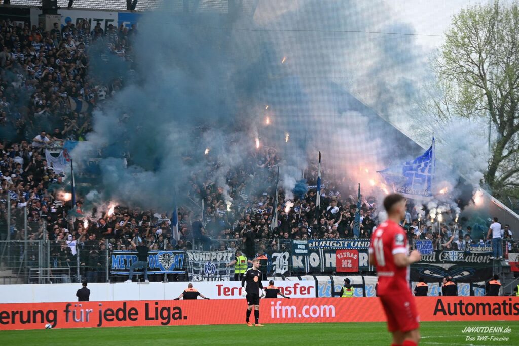 Obwohl der Ordnungsdienst am Eingang zum Gästeblock etwas Pyrotechnik aufgefunden haben will, zeigten die MSV-Ultras innerhalb des Stadions trotzdem eine größere Pyroshow. Außerdem wurden im Gästeblock immer wieder Böller gezündet. Dadurch sollen zwei Personen verletzt worden sein.