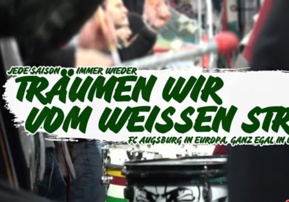 Unter dem Titel „Es geht nur gemeinsam! Saisonendspurt 2024“ werden dabei die Europapokalträume der FCA-Fanszene untermauert. „Jede Saison, immer wieder – träumen wir vom weißen Strand – FC Augsburg in Europa, ganz egal in welchem Land!“: