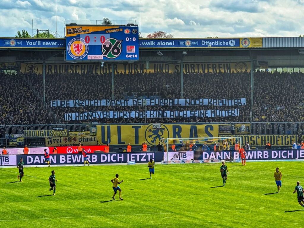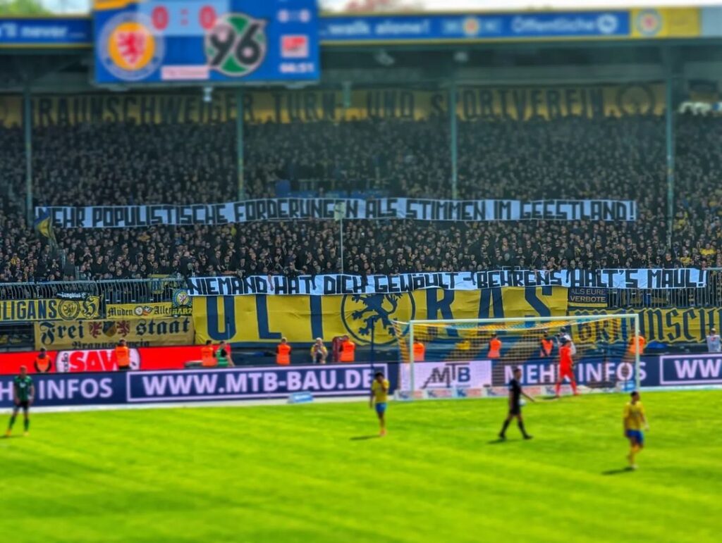 „Eure Inzucht macht den Fußball noch kaputter, in Hannover fickt das Kind auch seine Mutter!“, lautete ein Spruchband in der Südkurve, was auf den anhaltenden Konflikt zwischen Martin Kind und dem Hannover 96 e.V. anspielte. Ein „Mehr populistische Forderungen als Stimmen im Geestland! Niemand hat dich gewählt – Behrens halt’s Maul!“-Spruchband richtete sich an Daniela Behrens, Innenministerin von Niedersachsen. Behrens geriet zuletzt in die Kritik sowohl von Eintracht Braunschweig– als auch von Hannover 96-Fans. Die Innenministerin war beim gestrigen Niedersachsenderby im Eintracht-Stadion vor Ort. „Mal wieder keine schönen Szenen im Stadion in Braunschweig. Massiv Pyro auf beiden Seiten. Unbescholtene Besucher und Ordner verletzt. Polizei ist mal wieder gefordert. Verhalten der Ultras hat mit Fussballliebe nichts zu tun. Echte Fans unterstützen ihren Club anders. Weitere Maßnahmen notwendig. Danke an @polizei.braunschweig“, kritisierte die SPD-Politikerin die Pyroaktionen beider Fanszenen.