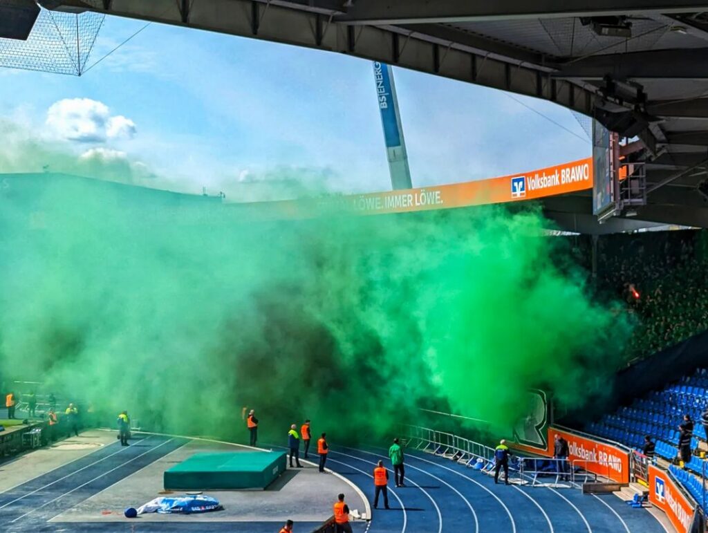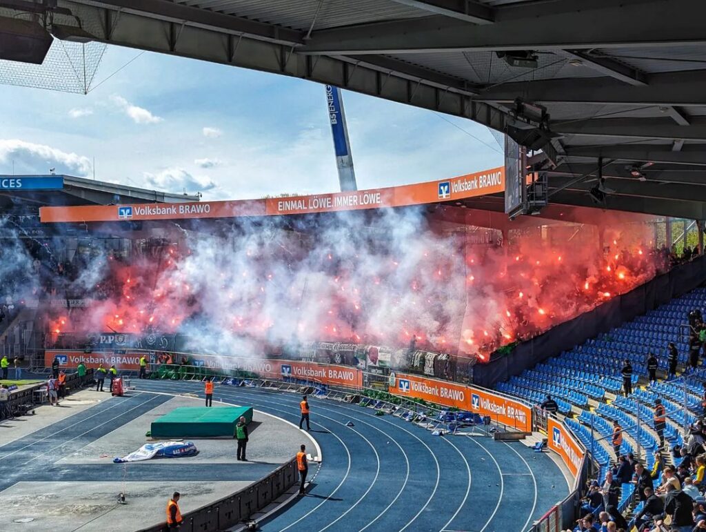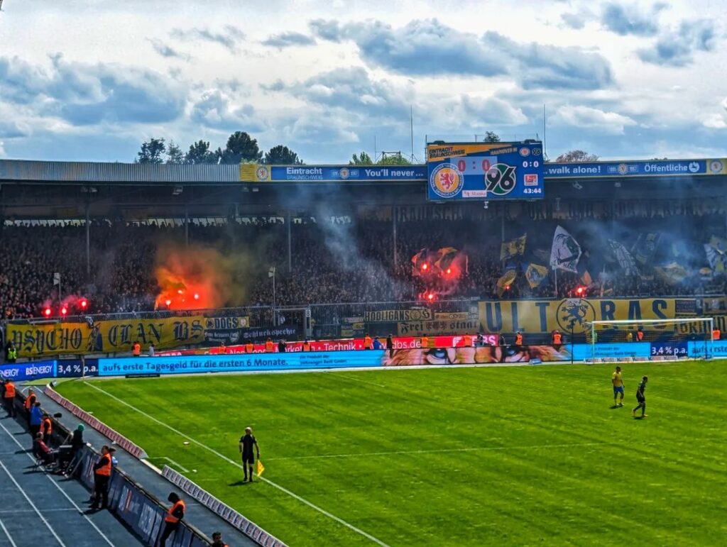 Im ausverkauften Eintracht-Stadion kam es am Sonntag zum Niedersachsenderby zwischen Braunschweig und Hannover 96. In der Südkurve wurde die Partie mit einer großen Choreografie eingeleitet. Im Gästeblock wurde eine Rauchaktion durchgeführt, die für einen verspäteten Anpfiff sorgte.
