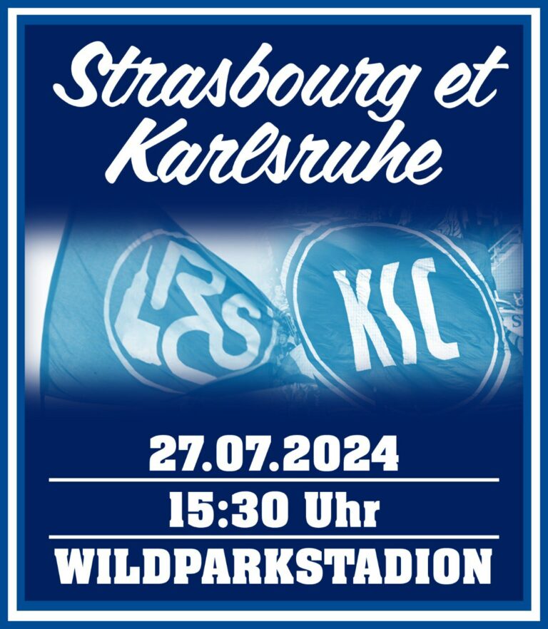 Am 27. Juli 2024 kommt es noch zum Freundschaftsspiel zwischen dem Karlsruher SC und dem Racing Club de Strasbourg. Zwischen den Ultras beider Verein besteht eine Freundschaft, die das Testspiel zum richtigen Freundschaftsspiel macht. „Ciao Gegengerade, die Sommerpause neigt sich dem Ende zu, die Akkus sind wieder aufgeladen und alle sind heiß auf die neue Saison. Passend hierzu steht am Samstag den 27.07.2024 ein Testspiel gegen unsere Freunde aus Straßburg an – der perfekte Rahmen um sich zusammen als Kurve auf die neue Saison einzustimmen. Holt euch Karten und raus in den Wildpark!“, machen die KSC-Ultras für das Testspiel mobil. (Faszination Fankurve, 25.07.2024)