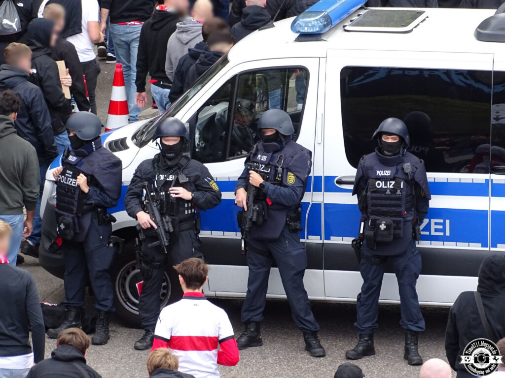 Viele der Vorfälle in der vergangenen Spielzeit wurden maßgeblich durch Polizei-Spezialeinheiten herbeigeführt. Diese hochgerüsteten und maximal konfrontativ auftretenden Einheiten sollen für besondere Gefahrensituationen vorgesehen sein und sind somit im Umfeld eines Fußballspiels völlig fehl am Platz. Daher fordern wir einen Ausschluss von BFE, USK & Co. im Rahmen der Sicherheitsplanungen von Fußballspielen.