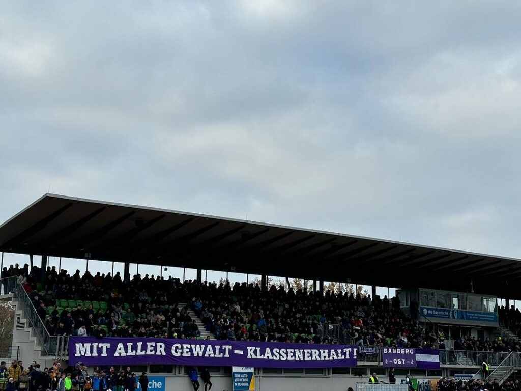 Beim Oberfranken-Derby hatte die Auflösung der Raglos zur Folge, dass es auf Heimseite keinen organisierten Support mehr gab. Statt der Zaunfahne der Gruppe hing im Heimbereich eine große „Mit aller Gewalt – Klassenerhalt“-Zaunfahne. Die Stimmungshoheit hatten hingegen die Gästefans aus Bayreuth. (Faszination Fankurve, 22.11.2024)