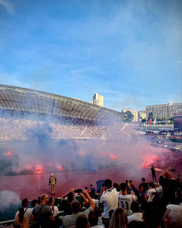 Zu Wiederanpfiff zündeten die Fans von Dinamo außerdem einige Fackeln, welche im Anschluss gen Innenraum geworfen wurden.