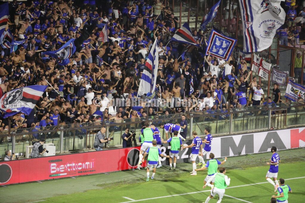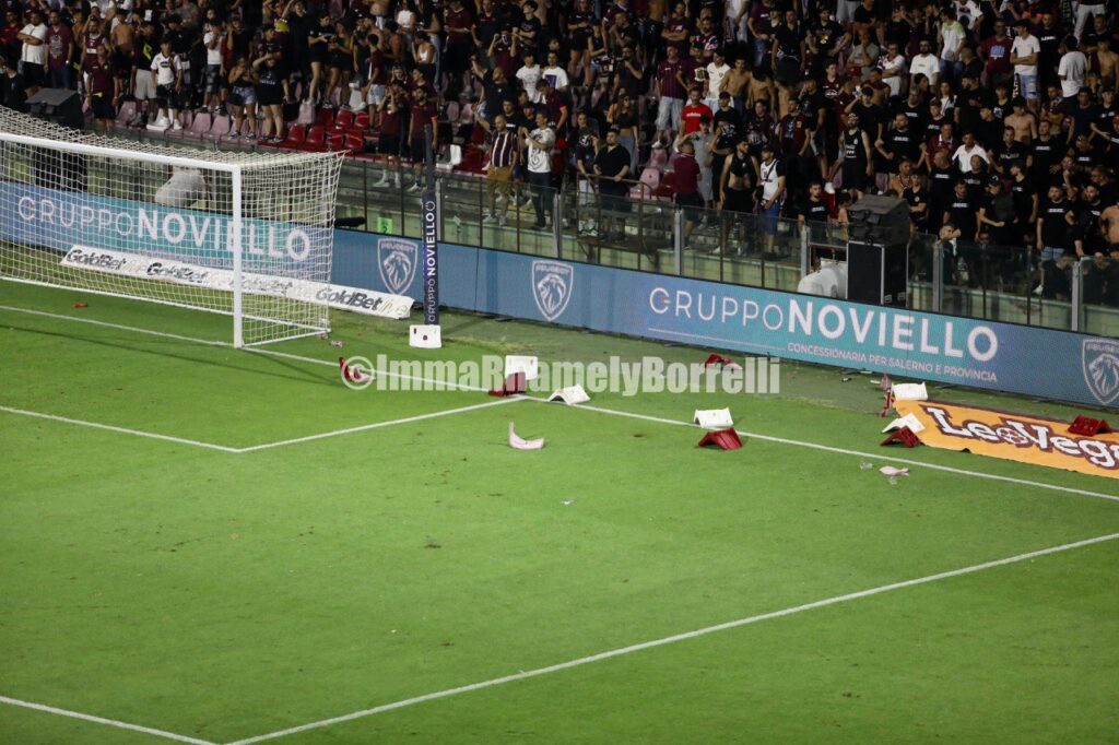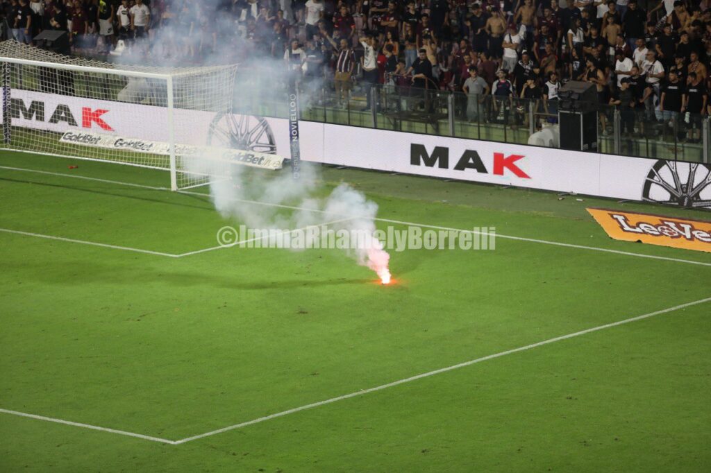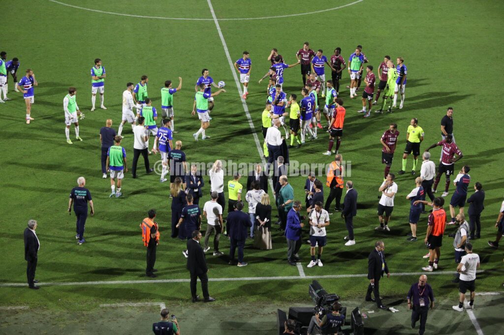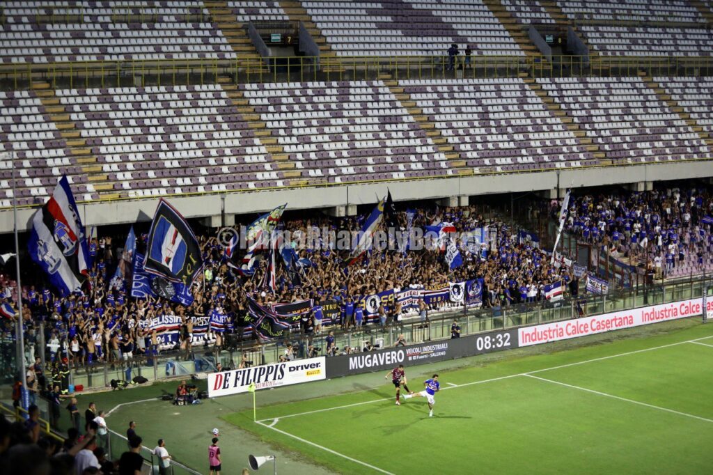 Von diesem Moment an beginnt alles zu driften, und parallel dazu werden die Bewegungen auf dem Spielfeld so schwer wie die Besorgnis auf den Tribünen. Die Rufe der Fans werden vom kühlen Wind weggeweht, der heute Abend über das Arechi weht, angenehm und zugleich spöttisch. Leider überlebt nur einer von beiden, und die allgemeine Stimmung gleicht der in einer Kampfarena, insbesondere unter den Fans. In der zweiten Halbzeit geht Sampdoria in Führung, und während die Doriani endlich aufatmen, zerbrechen die Hoffnungen der Salernitani und weichen der Enttäuschung über den Abstieg in die Serie C, der immer deutlicher wird.