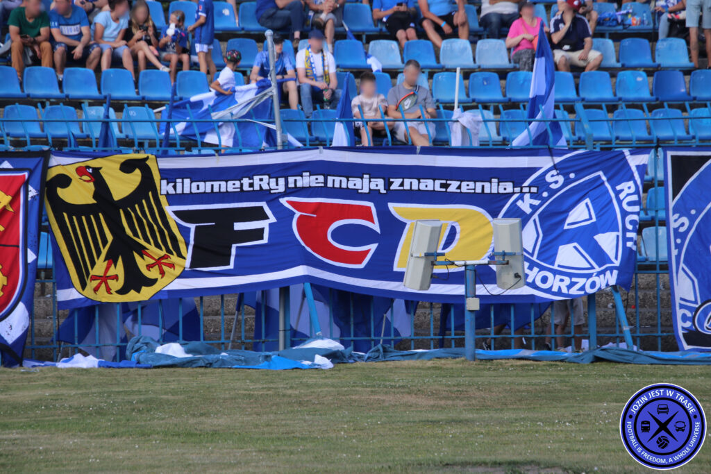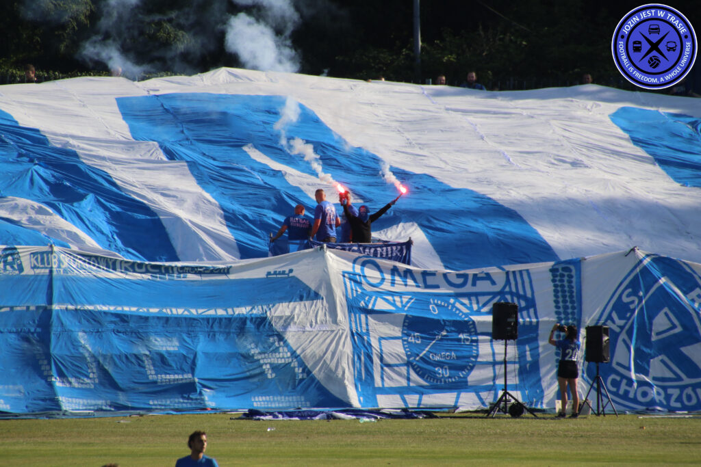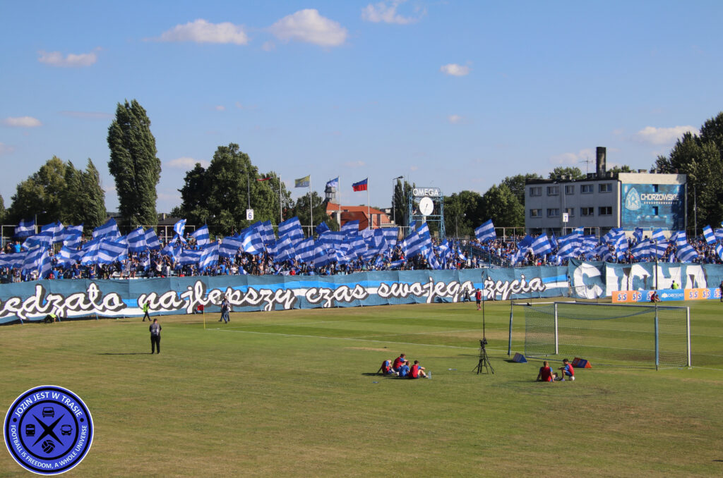 Erst vor wenigen Wochen kam es zur Neuauflage dieses Klassikers inklusive handfesten Auseinandersetzungen zwischen beiden Fanlagern. Gespielt wurde allerdings im Stadion Slaski. Offiziell noch zugehörig zur Stadt Chorzow, grenzt Katowice direkt daneben. So wohnen in vielen Plattenbauten in Nähe des Stadion Slaski Fans von GKS Katowice. Ende 2023 fand der Wechsel dorthin statt. Zuvor musste man fast ein ganzes Jahr lang ins 40km entfernte Gliwice ausweichen, wo man sich beim lokalen Verein Piast einmieten konnte. Das letzte Pflichtspiel an der Cicha 6 fand 29. Oktober 2022 statt. Ausgerechnet gegen den Erzfeind aus Katowice.