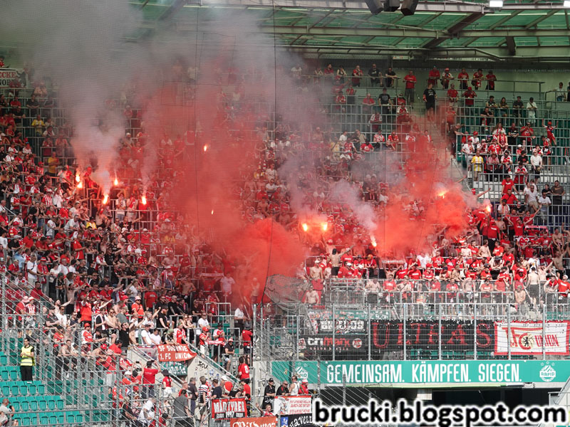 Interessant: Auch Stadtrivale Hertha BSC gastierte an diesem Wochenende in Österreich – genauer gesagt am Freitag bei Austria Wien. Auch dort war die Fanszene präsent, wenn auch in kleinerer Zahl als die der Ost-Berliner.