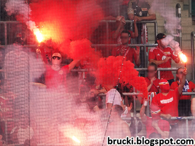 Außerdem zeigten die Ultras Rapid ein Gedenkspruchband für einen verstorbenen Rieder, das auch vom Gästeblock respektvoll mit Applaus gewürdigt wurde. Bereits am Freitag beim Testspiel zwischen dem SV Ried und Energie Cottbus hatten die Gästefans ein ähnliches Spruchband gezeigt.