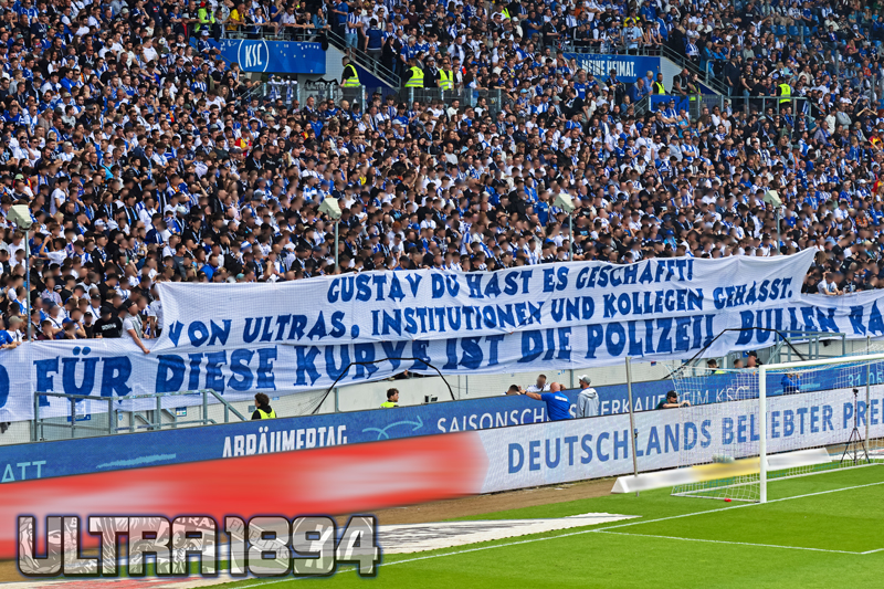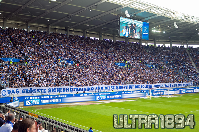Das Südwest-Derby zwischen Karlsruhe und Kaiserslautern im vergangenen Mai löste aufgrund eines fragwürdigen Polizeieinsatzes starke Kritik am Vorgehen der Ordnungshüter aus und führte dazu, dass die Karlsruher Szene nicht mehr wie gewohnt optisch in Erscheinung trat. Nun zeichnet sich eine Besserung ab – was mit einer mehrteiligen, thematisch passenden Choreografie beim Heimspiel gegen Münster zelebriert wurde.
