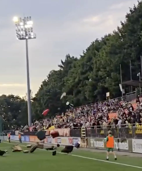 Vilnius Fans werfen aus Protest gegen Trainer Reisekoffer auf das Spielfeld