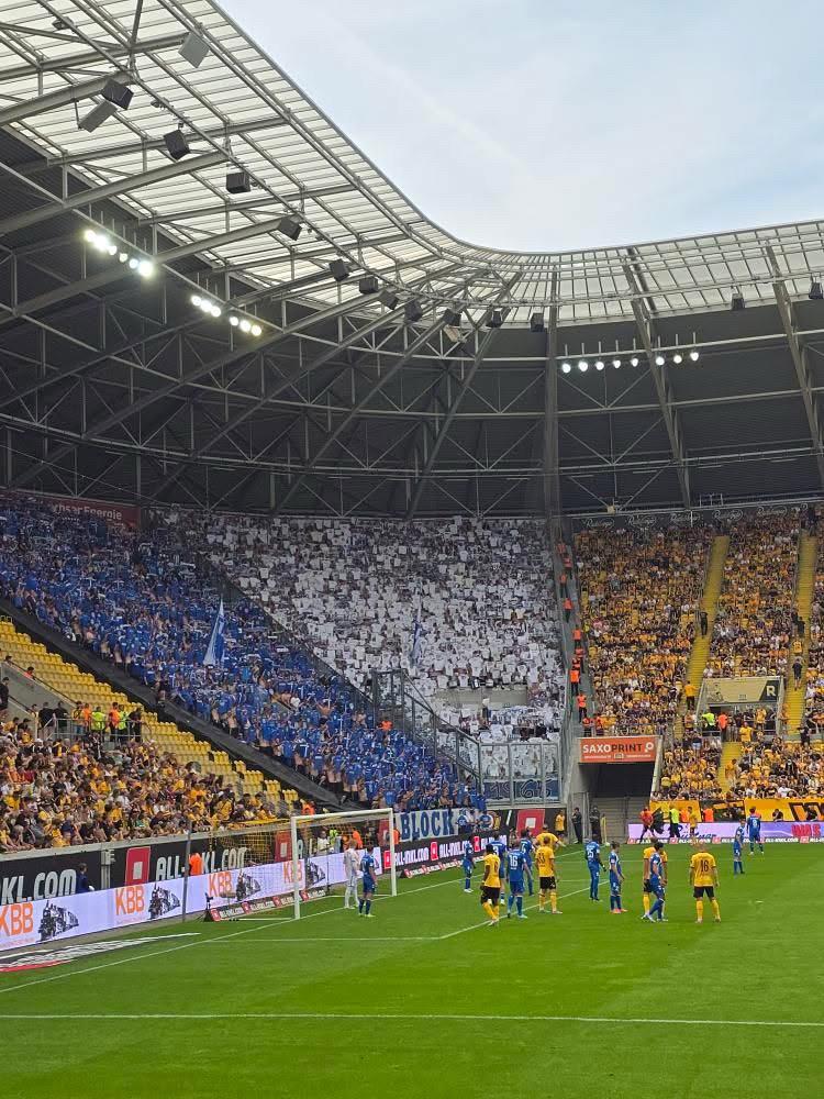 Erstmals seit 2019 standen sich heute die Fanszenen aus Dresden und Magdeburg im Stadion gegenüber. Über 30.000 Zuschauer waren zugegen und sahen auch auf den Rängen mehrere Fan-Aktionen im brisanten Ost-Duell.