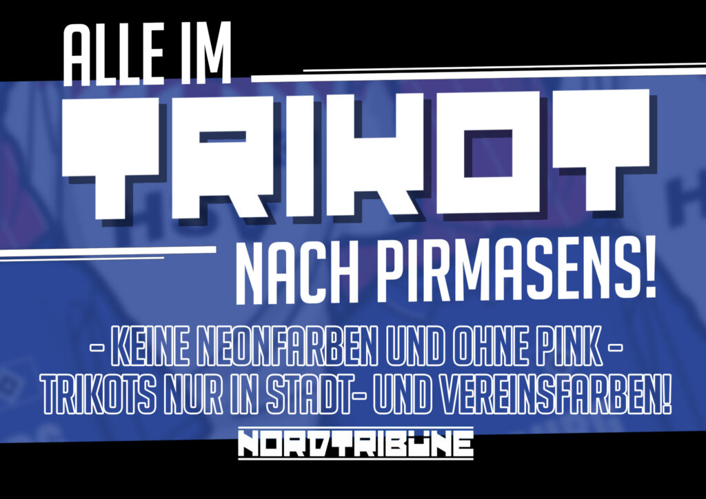 Seit Wochen ist das Stadion vom FK Pirmasens mit 10.000 abgesetzten Tickets ausverkauft. Die Nordtribüne Hamburg mobilisiert für eine Trikotfahrt. Hier fordert man die HSV-Fans auf, keine pinken oder neongelben Trikots zu tragen. Bekanntlich sorgten die neuen Ausweichtrikots der Hansestädter für Empörung – Faszination Fankurve berichtete.