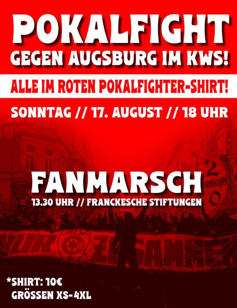 13:30 Uhr trifft sich die Fanszene von Halle bei den Franckeschen Stiftungen zum Fanmarsch. Aufgerufen wird zudem, geschlossen im bekannten roten Pokalfighter-Shirt aufzutreten.