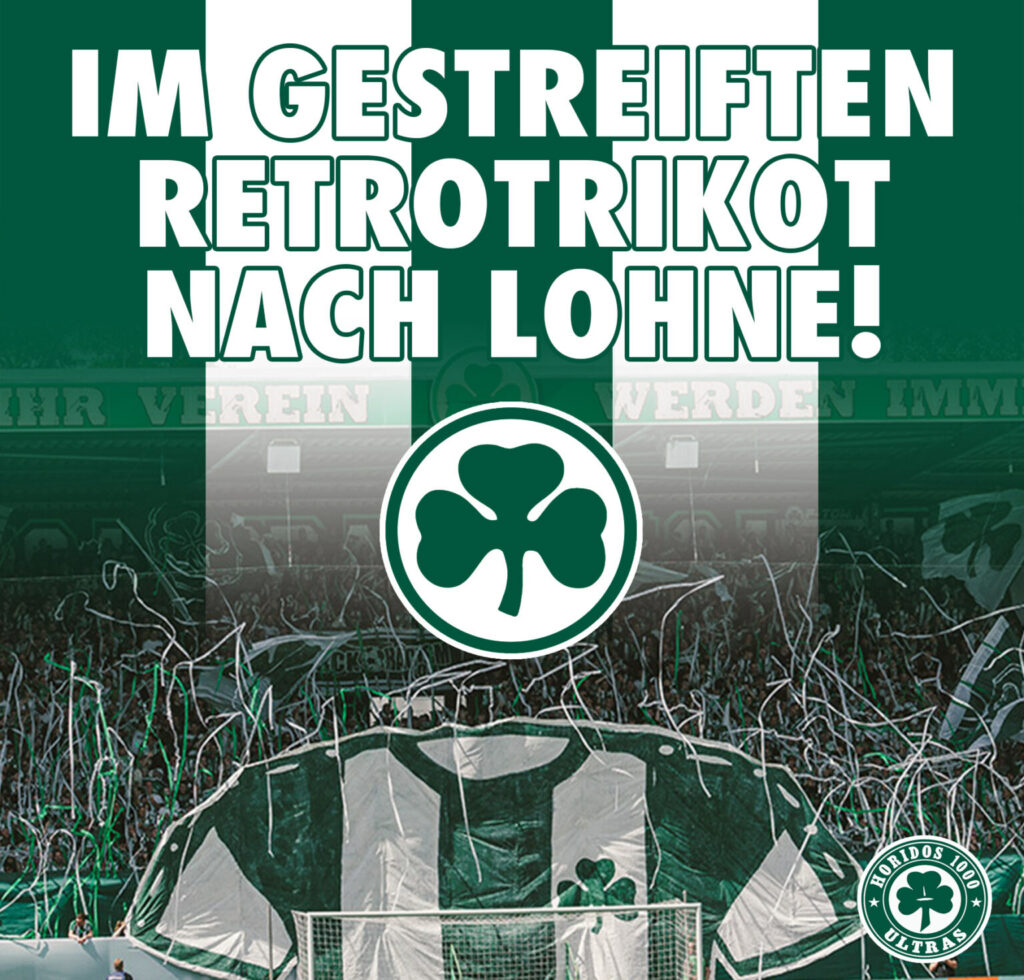 Die Horidos rufen alle Kleeblattfans auf, im gestreiften Retro-Trikot nach Lohne zu reisen und somit für ein geschlossenes und einheitliches Auftreten im Gästeblock zu sorgen.