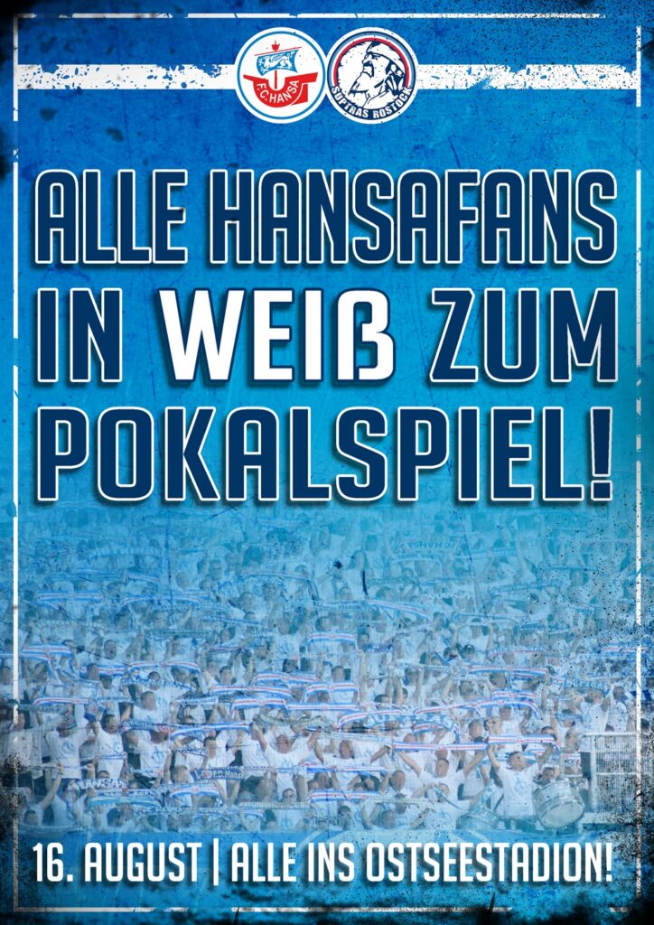 Heimspiel für Hansa. Suptras Rostock ruft alle Hanseaten auf, in Weiß zum Pokalspiel ins Ostseestadion zu kommen.