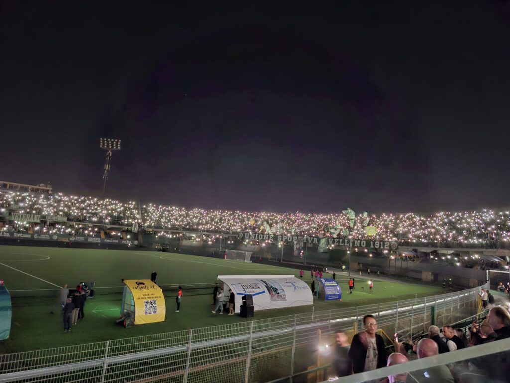 Über sieben Jahre ist es her, dass US Avellino zuletzt ein Heimspiel in der zweithöchsten italienischen Liga austrug. Diese Rückkehr wurde mit einer Choreo sowie Pyrotechnik zelebriert – und von einem Flutlichtausfall begleitet. (Faszination Fankurve, 17.09.2025)