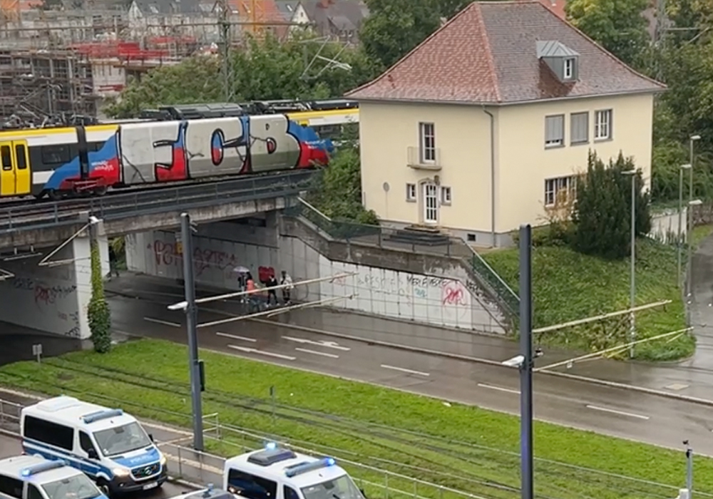 Die Kreativabteilung der Muttenzerkurve war nicht untätig gewesen und schickte u. a. zwei bemalte Züge in den Stunden vor dem Spiel nach Freiburg.