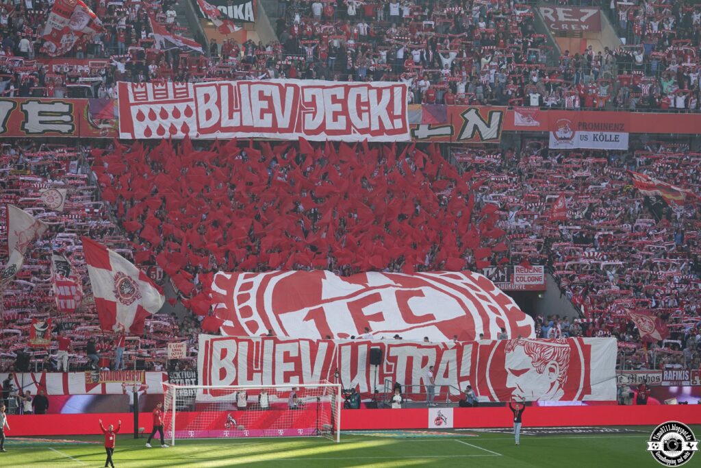 Zu Spielbeginn gab es von den Coloniacs in S4 eine zweiteilige Choreo. Erster Teil: „Bliev Jeck, Bliev Ultra“-Spruchband mit kleiner FC-Blockfahne. Zweiter Teil: eine Aktion für Stadionverbotler mit dem Spruchband „Diffidati Con Noi“. Die Coloniacs feierten zudem ihr 16-jähriges Bestehen. Außerdem zeigten sie ein Spruchband für „30 Jahre Lotta“, einer alternativen Kneipe in der Südstadt, und solidarisierten sich mit der schwedischen Ultraszene in der Debatte um das Vermummungsverbot. Die Wilde Horde schickte Genesungswünsche an FC-Spieler Luca Kilian, der sich kürzlich den dritten Kreuzbandriss zugezogen hatte. Zur zweiten Halbzeit folgte eine kleine Doppelhalter-Aktion, jeweils von Fraktion und Coloniacs. Die Gäste aus Stuttgart erreichten frühzeitig das Kölner Stadtgebiet und freuten sich im Stadion über den nächsten 2:1-Erfolg in dieser Woche.