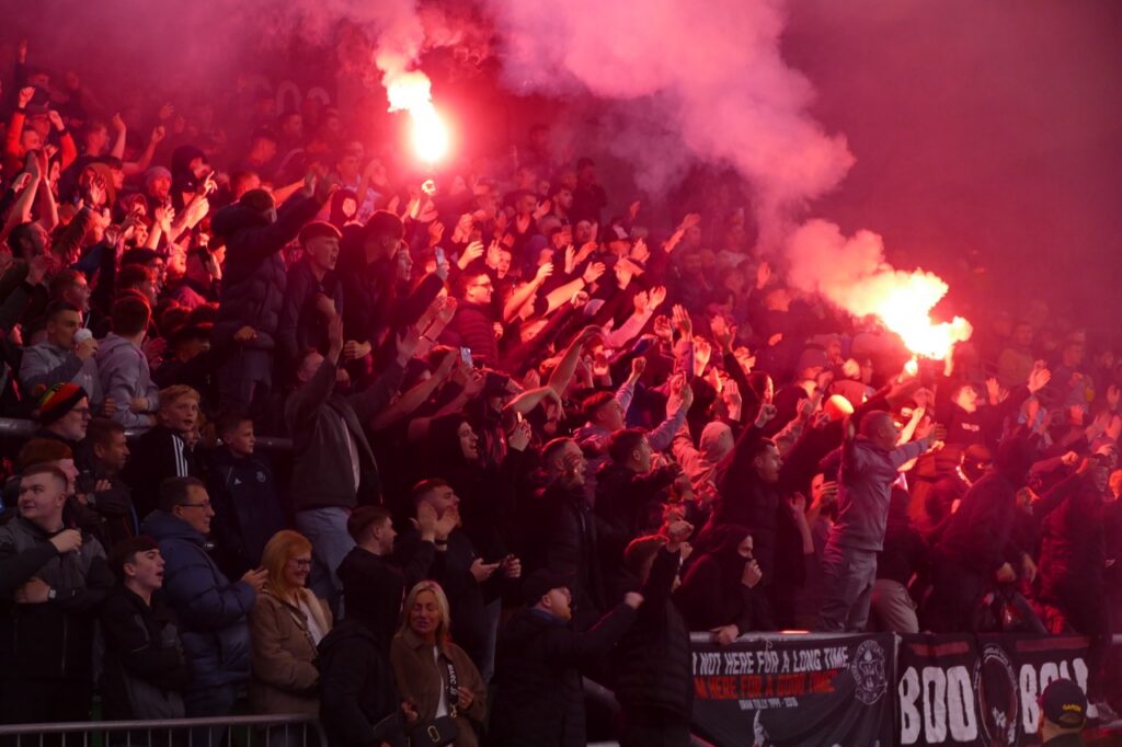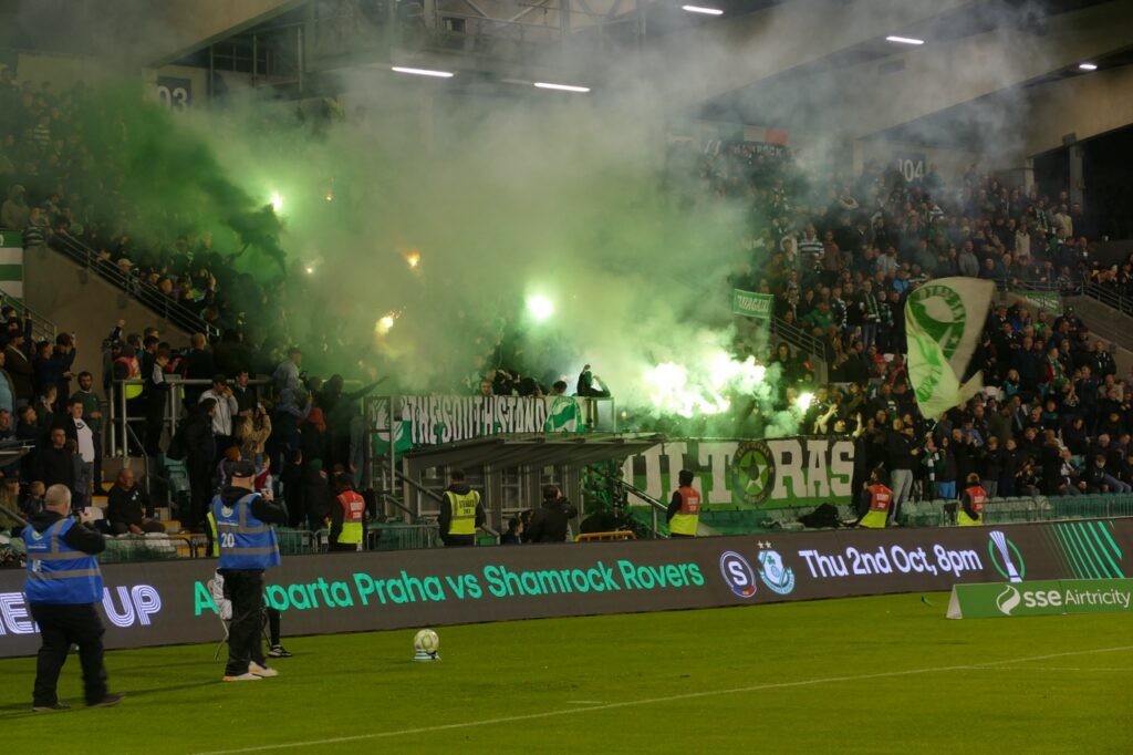 Der Bohemian FC konnte kurz vor der Halbzeitpause ausgleichen, was die Gästefans zum Toben brachte. Dabei zündeten sie ähnlich viel Pyrotechnik wie zu Spielbeginn.
