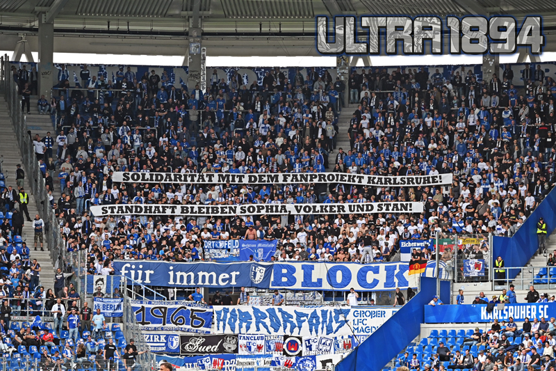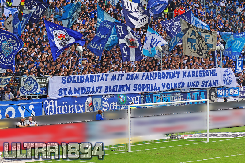Mitte Oktober stehen diese Berufungsverhandlungen an. Um den dreien weiterhin möglichst viel Rückhalt zu geben, gab es an den letzten beiden Wochenenden deutschlandweite Spruchbandaktionen. So sah man am letzten Septemberwochenende viele Spruchbänder mit der Botschaft: „Solidarität mit dem Fanprojekt Karlsruhe – Standhaft bleiben, Sophia, Volker und Stan!“
