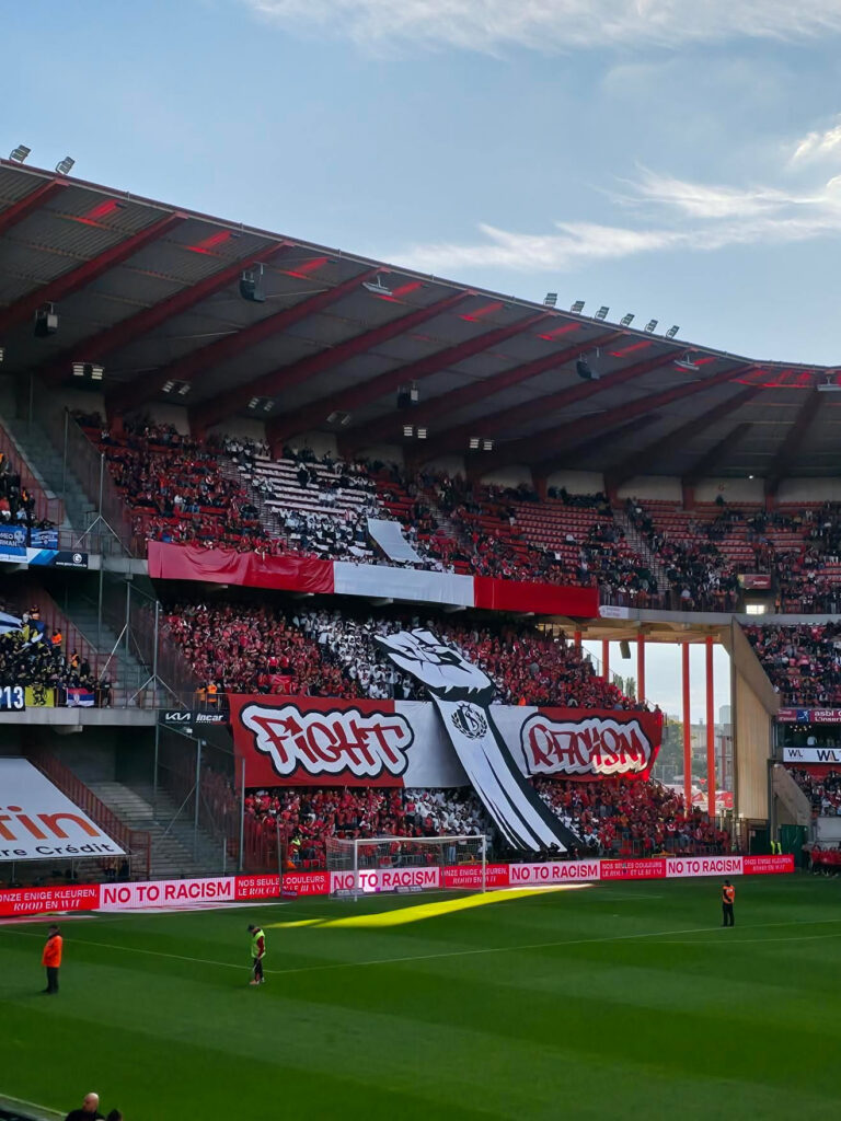 Ende September trafen in Lüttich der lokale Verein Standard auf den FC Brügge. Das Spiel stand unter dem Motto „one game – one love – no to racism“. Dazu zeigte die Heimseite eine thematisch passende Choreografie. Außerdem zeigte man noch zu einer anderen Thematik optische Aktionen. (Faszination Fankurve, 09.10.2025)