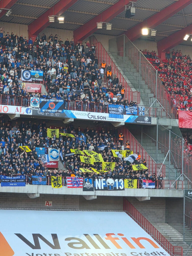 Am 27. September dieses Jahres trafen vor 21.051 Zuschauern Standard Lüttich und der FC Brügge aufeinander. Darunter auch etwa 1.500 Fans aus Brügge im somit gut gefüllten Gästeblock. Zum Anpfiff und immer mal wieder zwischendurch zeigten die Gästefans kleine gelbe Fahnen, auf denen die Flagge der Region Flandern zu sehen war.