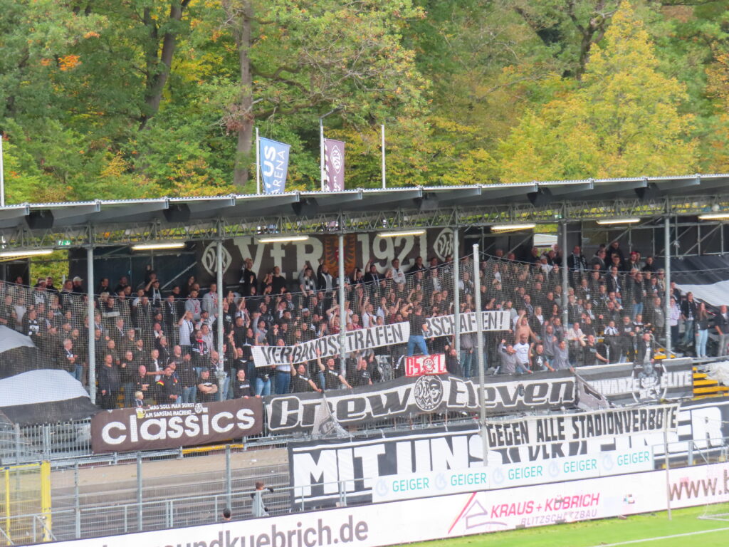 Die Gäste riefen bereits im Vorfeld zur gemeinsamen Zugfahrt auf. Dieser schlossen sich auch die Freunde aus Sankt Gallen und Stuttgart in großer Zahl an, sodass der Gästehaufen deutlich größer war als bei den üblichen Auswärtsspielen. Auch bedingt durch den enttäuschenden Spielverlauf fehlte in der ersten Halbzeit über längere Zeit ein wenig Durchschlagskraft. Als in der zweiten Halbzeit das Spiel deutlich entschieden war, wirkte der Gästeauftritt befreit und erreichte ein gutes Niveau.