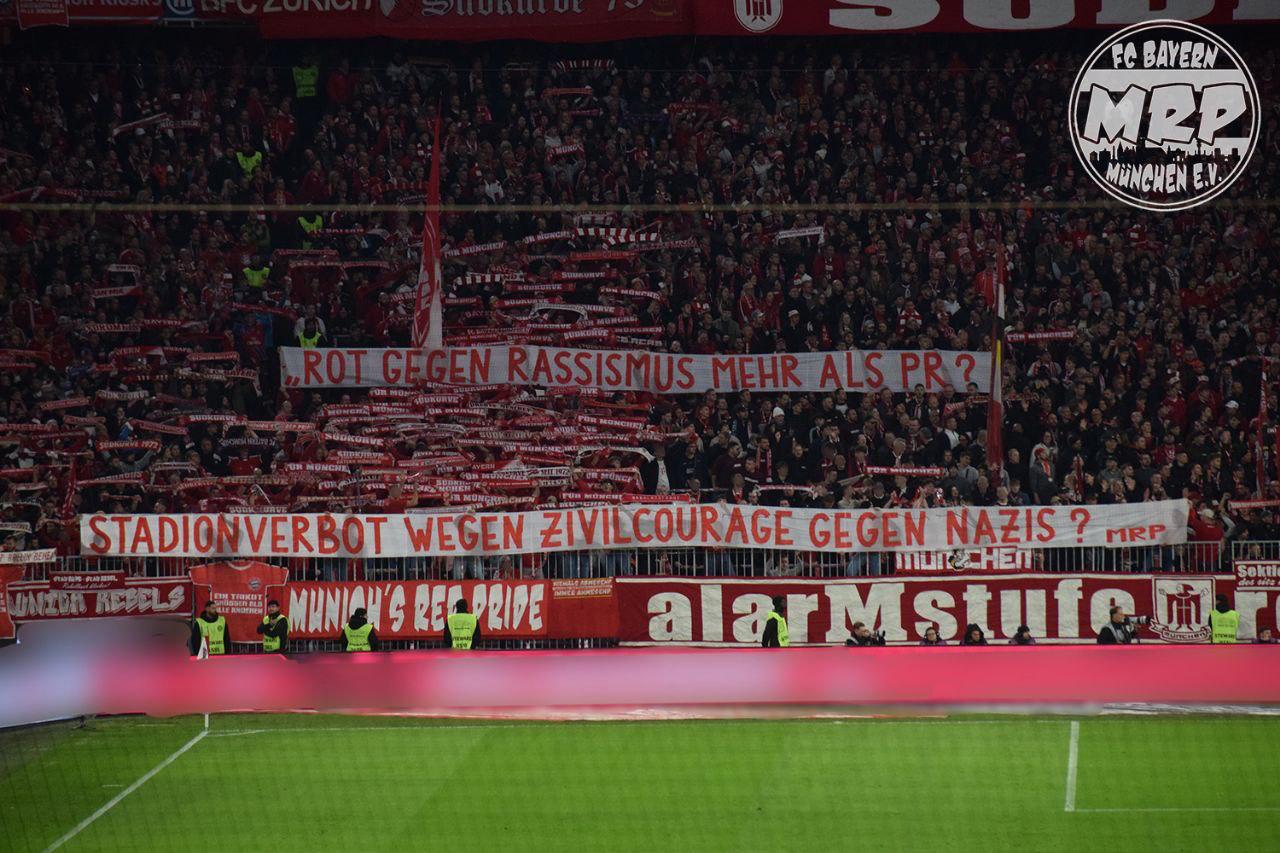 Aufgrund dieses Stadionverbots kritisiert die Gruppe den FC Bayern München, der immer wieder mit dem Slogan „Rot gegen Rassismus“ arbeitet. So stellt sich laut MRP die Frage: „Wie konsequent ist der Kampf gegen Rassismus, wenn ein Fan für sein antirassistisches Handeln in der clubeigenen Arena mit einem Stadionverbot belohnt wird?“