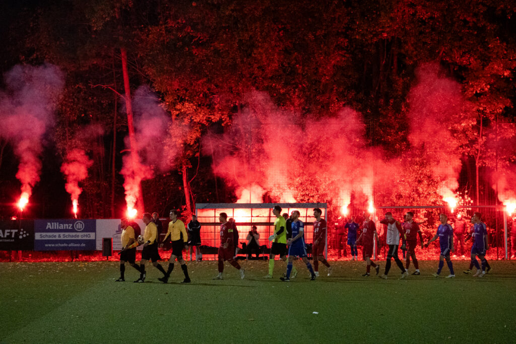 Abgesehen von ein paar Pöbeleien verlief die erste Halbzeit ereignislos. Zu Beginn der zweiten Halbzeit erhellten die Gäste den Sportplatz erneut mit ein paar Fontänen.