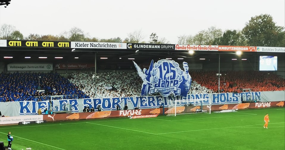 Mit einer mehrteiligen Choreografie zelebrierte die Kieler Fanszene das 125-jährige Vereinsbestehen. In den letzten Wochen feierte man mittels unterschiedlicher Aktionen bereits diesen Geburtstag. So gab es am Tag des Jubiläums beispielsweise einen Corteo – Faszination Fankurve berichtete.