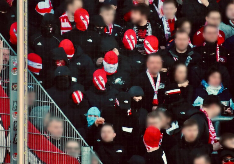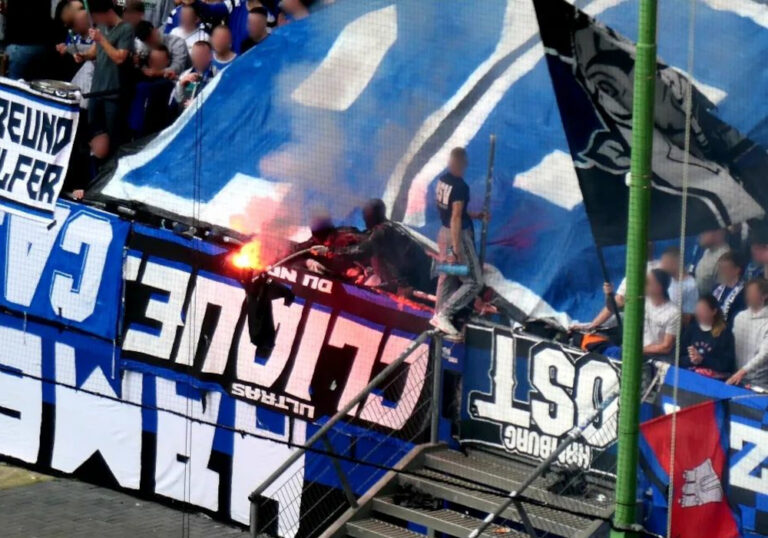 Zaunfahnen auf dem Kopf & Polizei-Pullover auf der Nordtribüne verbrannt