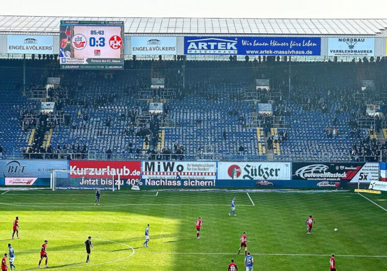 Südtribüne Rostock verlässt den Block & Hansa-Fan betritt den Innenraum