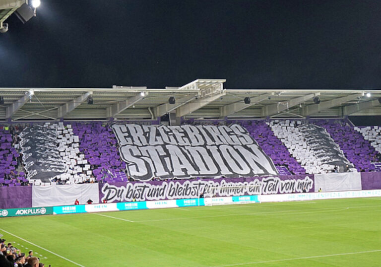Erzgebirgsstadion: Choreografie, eröffnete Gedenkstätte & Mindestziel bei Crowdfunding