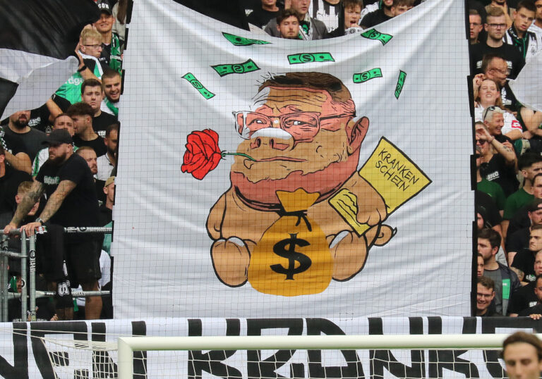 19 Minuten Protest mit Trillerpfeifen & Eberl-Cartoon