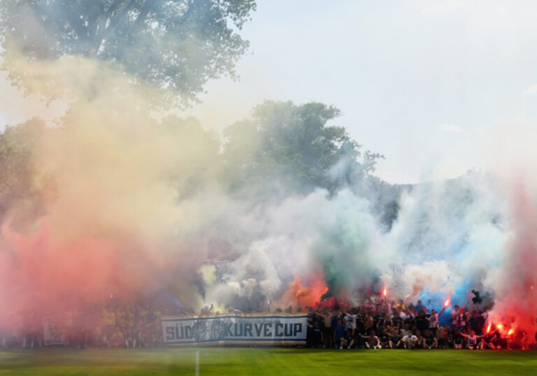Internationales Testspiel mit Choreografien, buntem Rauch & Rahmenprogramm