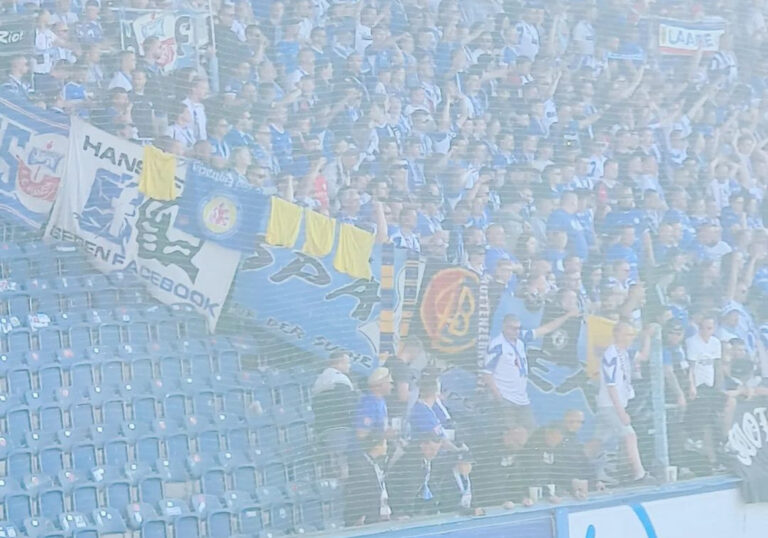 Fanmarsch, große Pyroshow, Plakate & geklaute Fankleidung