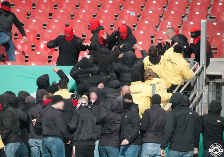 Verspäteter Anpfiff, Pyrotechnik & Auseinandersetzungen im Innenraum