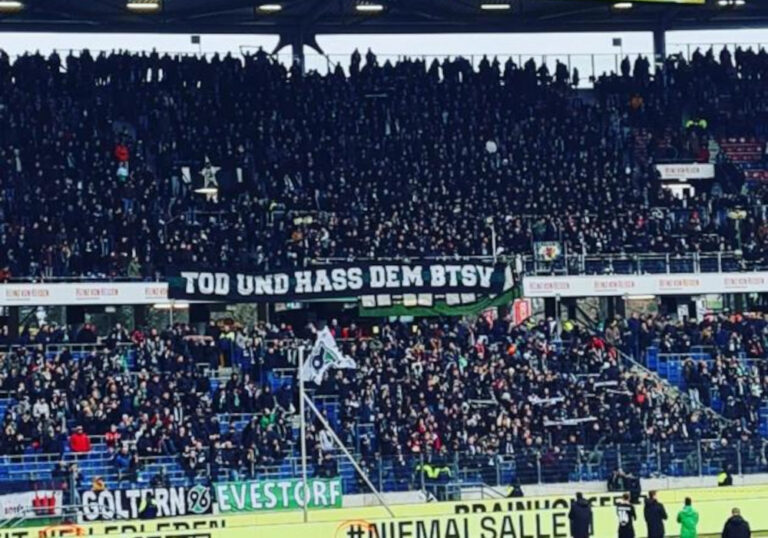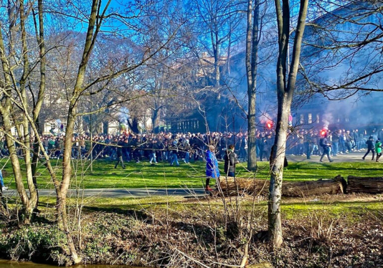 Choreo, Unterbrechungen, geklaute Fahne & blau-gelber Rauch im Gästeblock beim Niedersachsen-Derby