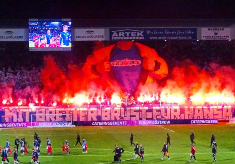 FC Hansa Rostock-Fans fahren in Bomberjacken nach St. Pauli