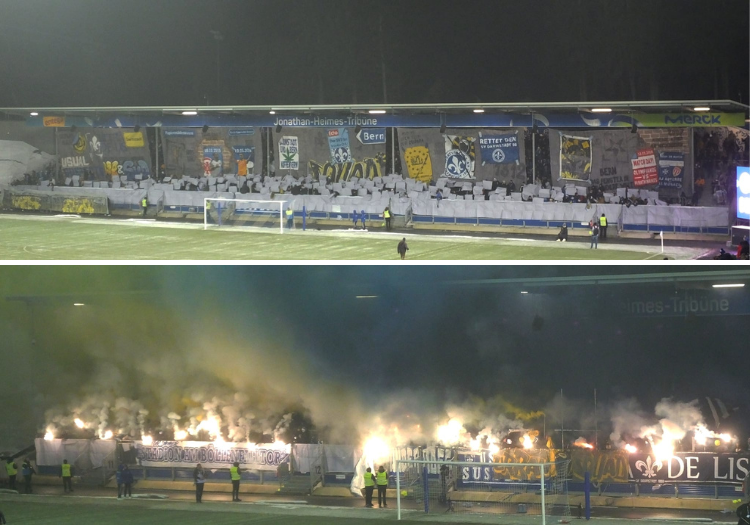 Choreografien & viel Pyrotechnik beim Freundschaftsspiel in Darmstadt