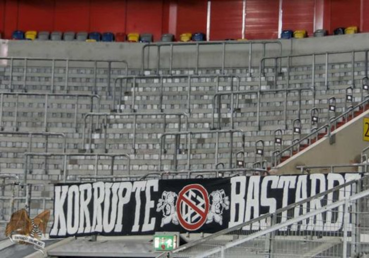 Spielabbruch: Zaunfahne der RWO-Ultras in Köln geklaut