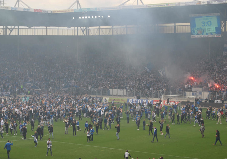 Pyroshow in der Nordkurve Gelsenkirchen & Platzsturm zum Aufstieg