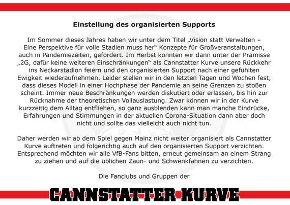 Einstellung des organisierten Supports beim VfB Stuttgart