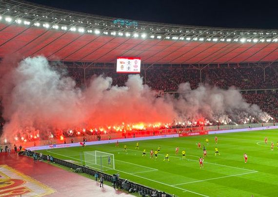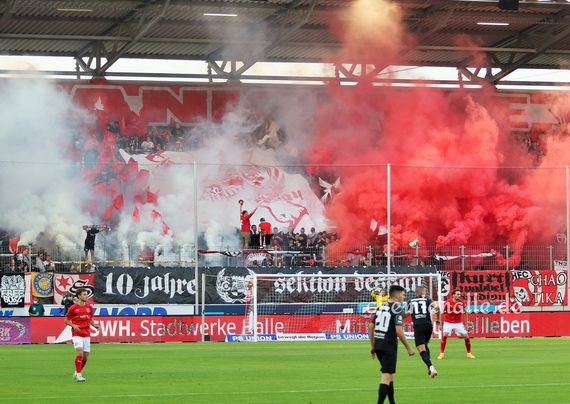 Union-Fans mit rot-weißer Pyroshow im Olympiastadion