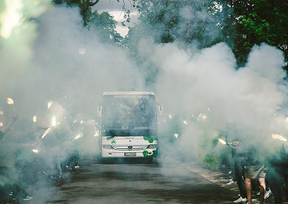 Hunderte Hansa-Fans feiern in Unterhaching