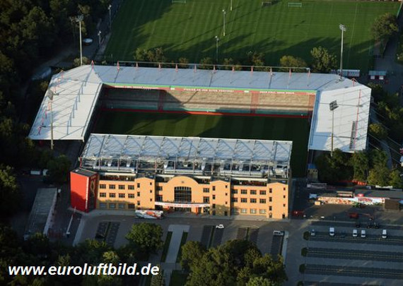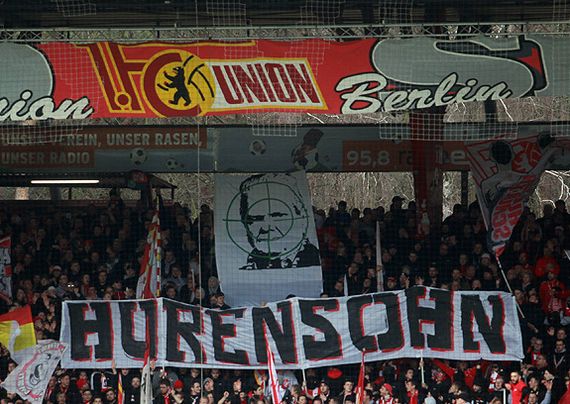 Vereinzelte Union-Fans mit Fangesängen hinterm Stadion